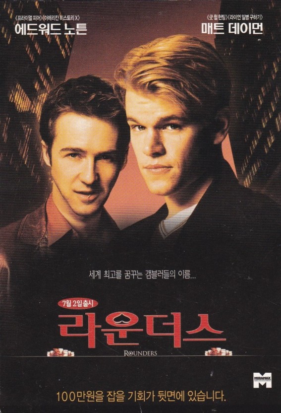 《라운더스》(Rounders)는 1998년 개봉한 미국 영화로, 포커를 소재로 한 드라마 장르의 작품이다. 존 달 감독이 연출하고 맷 데이먼과 에드워드 노튼이 주연을 맡았다. 이 영화는 심리전과 전략이 결합된 게임으로 묘사하며, 치열한 포커 세계에서 살아남으려는 주인공의 여정을 그린다.
